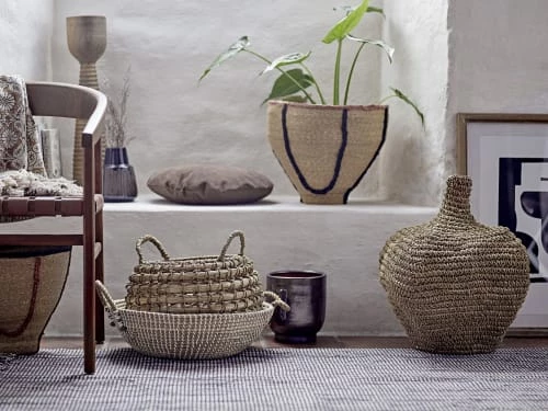 Maisons Du Monde Jarres Et Cache-pots Cache-pot En Fibre Végétale Et Pied En Métal Noir H30