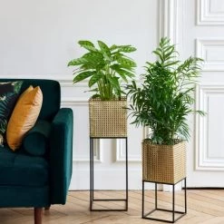Potiron Paris Jarres Et Cache-pots Lot De 2 Cache-pots Sur Pied En Métal Couleur Or