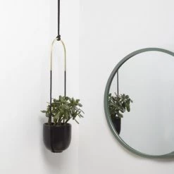 Umbra Jarres Et Cache-pots Cache-pot Suspendu Noir Céramique Et Laiton