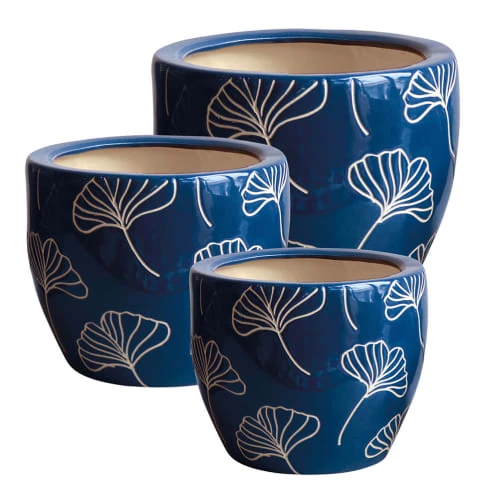 Maisons Du Monde Jarres Et Cache-pots 3 Cache-pots En Fibre De Maïs Bleu Gris H27