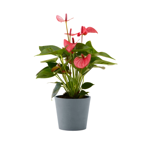 Flowy Plantes D’intérieur Et Fleurs D’intérieur Plante D’intérieur – Anthurium Rose 50 Cm En Pot Bleu Gris