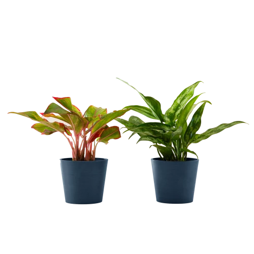 Flowy Plantes D’intérieur Et Fleurs D’intérieur Plante D’intérieur – Duo D’aglaonema 25 Cm En Pot Bleu Nuit
