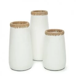 Bazar Bizar Jarres Et Cache-pots Vase En Terracotta Et Raphia Blanc H26