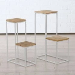 Wadiga Jarres Et Cache-pots Set De 2 Supports Pots Plantes étagés En Métal Blanc Et Bois
