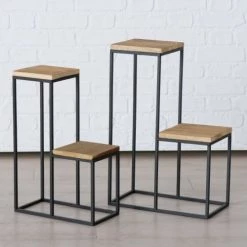 Wadiga Jarres Et Cache-pots Support Pot Plante Bois Et Métal – 30x30x30cm