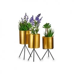 Wadiga Jarres Et Cache-pots Set De 3 Cache-pots Sur Pied En Métal Noir Et Doré