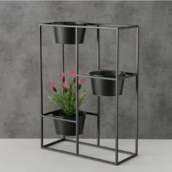 Wadiga Jarres Et Cache-pots Support Pots Plantes étagère En Métal Noir H77cm