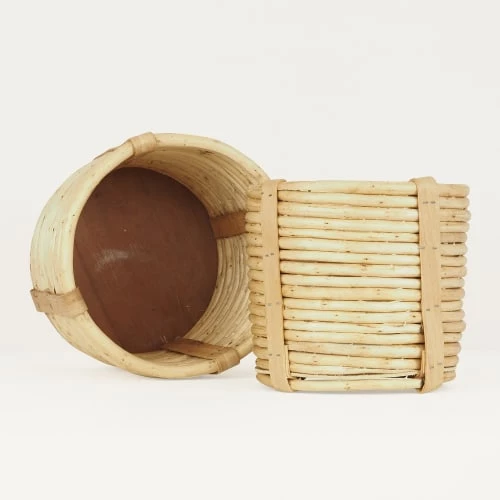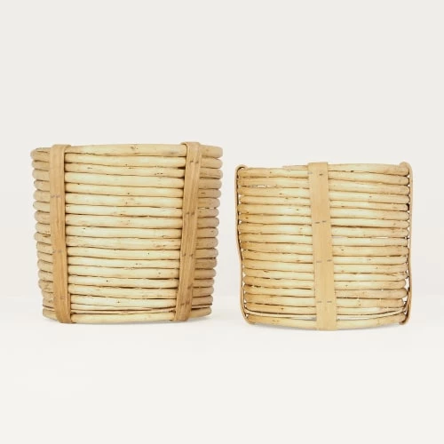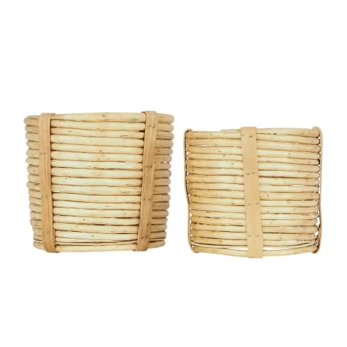 Optez pour ce lot de 2 cache-pots en rotin tressé.