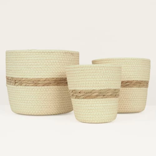 Optez pour ce lot de 3 cache-pots en rotin et leur liseret marron.
