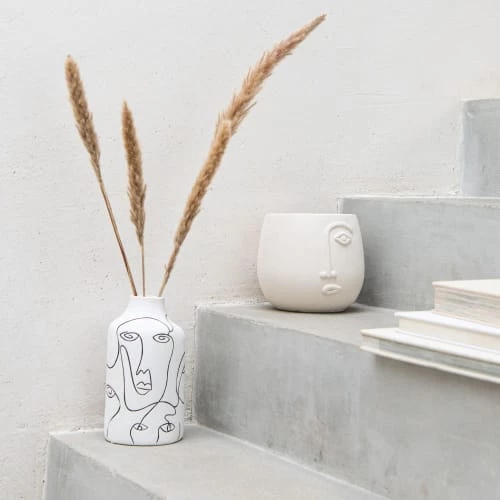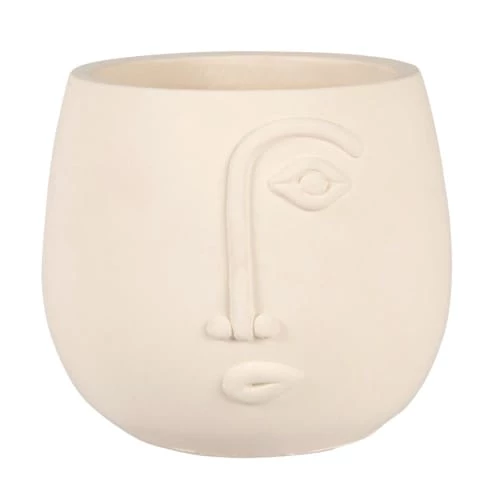 Maisons Du Monde Jarres Et Cache-pots Cache-pot En Ciment Blanc Motif Visage Sculpté H15