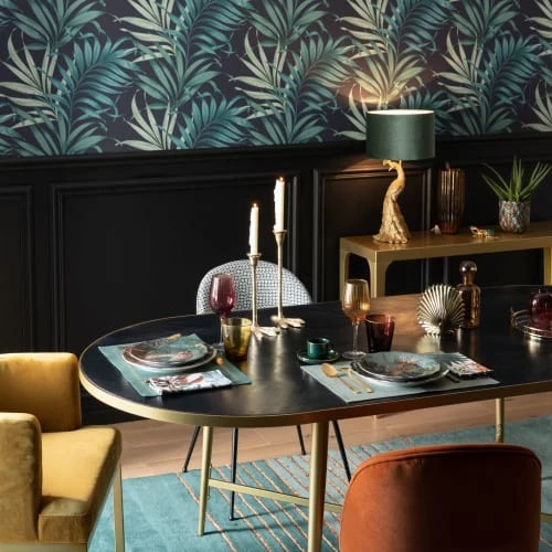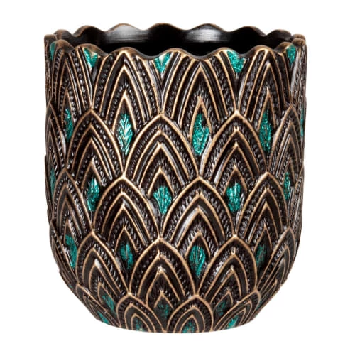 Maisons Du Monde Jarres Et Cache-pots Cache-pot En Grès Noir Motifs En Relief Dorés Et Bleu Canard H16