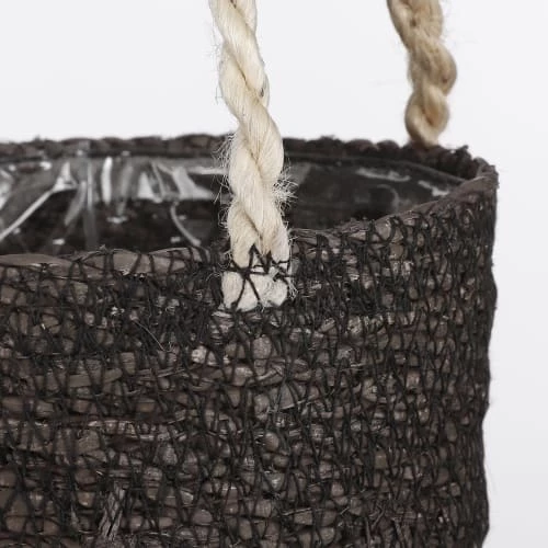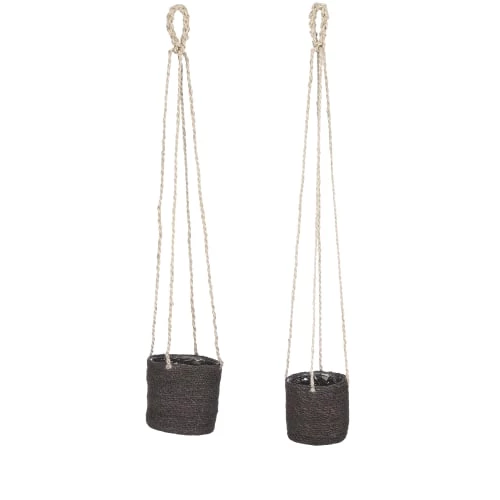Maisons Du Monde Jarres Et Cache-pots Cache-pot En Fibre Végétale Et Pied En Métal Noir H30