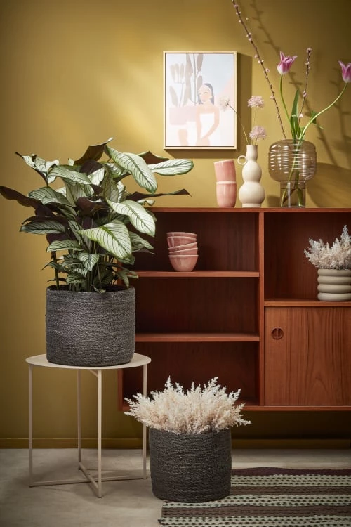 Maisons Du Monde Jarres Et Cache-pots 3 Cache-pots En Fibre De Maïs Bleu Gris H27
