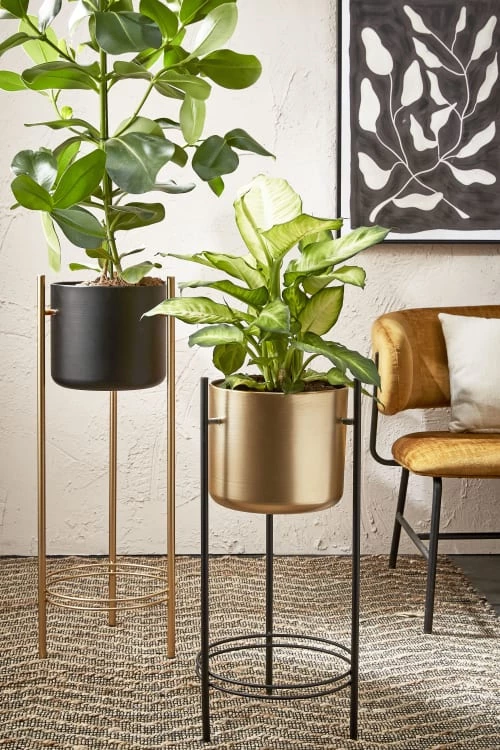 Mica Decorations Jarres Et Cache-pots Cache-pot En Métal Noir Et Doré