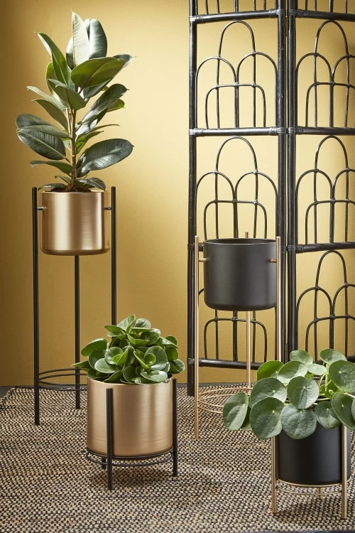 Mica Decorations Jarres Et Cache-pots Cache-pot En Métal Noir Et Doré