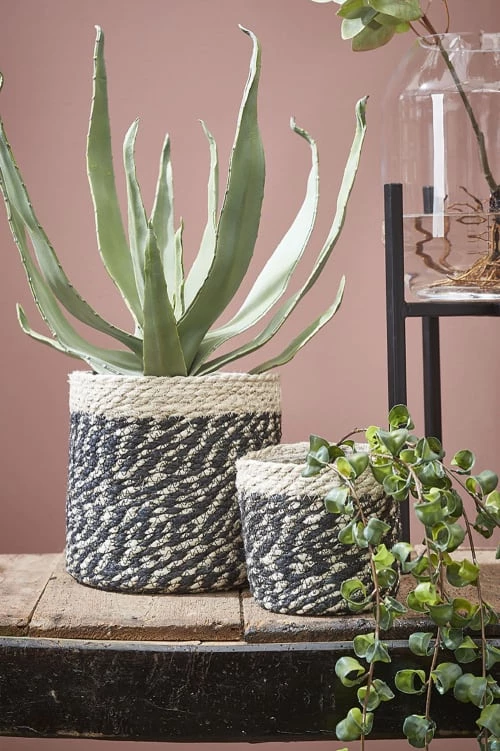 Maisons Du Monde Jarres Et Cache-pots Cache-pot En Fibre Végétale Et Pied En Métal Noir H30