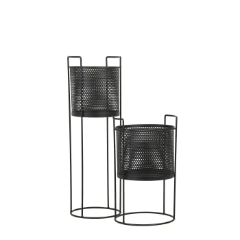 Maisons Du Monde Jarres Et Cache-pots Cache-pot En Fibre Végétale Et Pied En Métal Noir H30