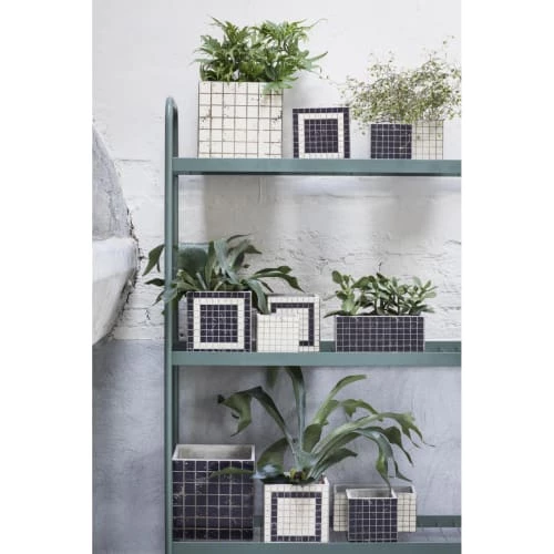 Maisons Du Monde Jarres Et Cache-pots Cache-pot En Ciment Vert Et Motifs Blancs H36