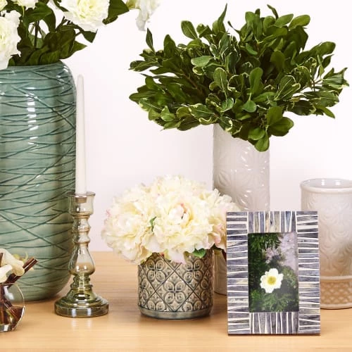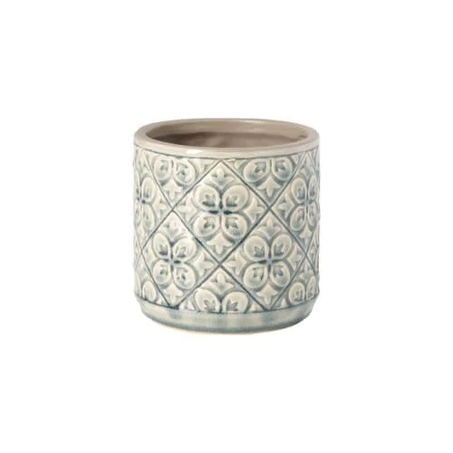 Cache-pot EMPOLI en céramique à relief graphique. Ce petit cache-pot à motifs est parfait pour apporter une petite touche de douceur grâce à sa couleur pastel.
