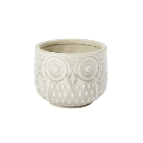 Pot à fleur blanc à motif tête de chouette. Parfait pour habiller une petite plante d’intérieur ou simplement décorer un meuble ou une étagère grâce à une couleur sobre et un design original.