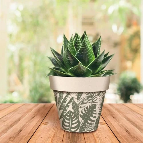STC Jarres Et Cache-pots Cache Pot En Bambou Feuilles Tropicales D17cm