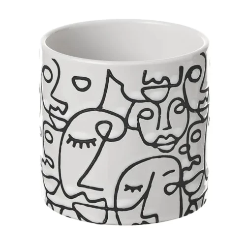Maisons Du Monde Jarres Et Cache-pots Cache-pot En Ciment Blanc Motif Visage Sculpté H15