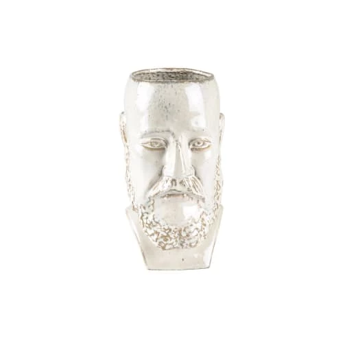 Maisons Du Monde Jarres Et Cache-pots Cache-pot En Ciment Blanc Motif Visage Sculpté H15