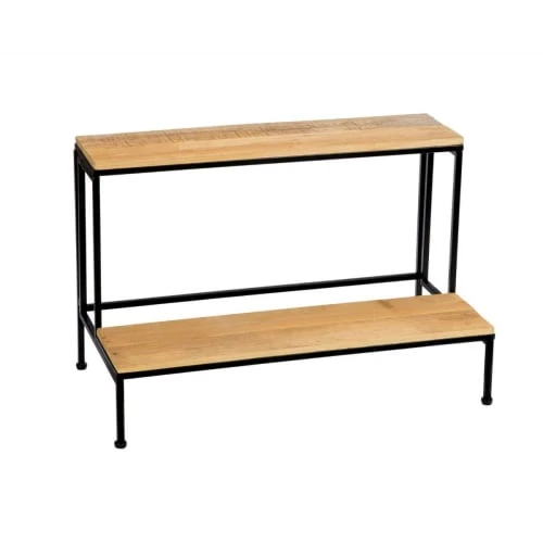 Wadiga Jarres Et Cache-pots Support Pots Plantes étagé En Métal Noir Et Bois 75x40x49cm