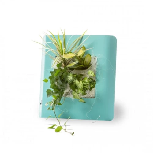 Les plantes prennent racine dans une poche contenant un substrat naturel spécifique à chaque composition, permettant aux plantes de se développer au fil des saisons. Une mèche en coton trempe dans un réservoir situé à l’arrière du cadre ce qui permet aux plantes d’absorber l’eau en fonction de leurs besoins.